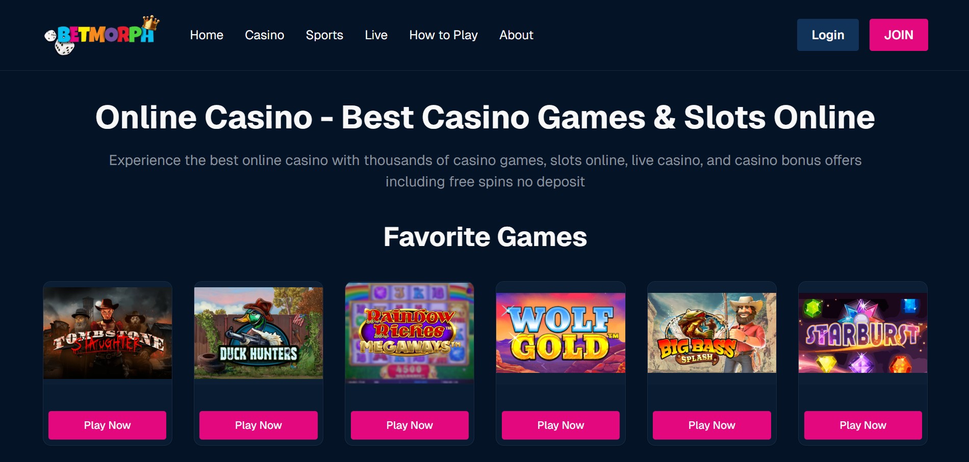 The casino features a well-curated library of over 500 slot titles, including favourites like Starburst, Book of Dead, and Big Bass Bonanza. Table games such as roulette, blackjack, and baccarat are available with low minimum bets, making them accessible for newcomers. The live dealer section focuses on roulette and blackjack, providing a straightforward interactive experience, though it has fewer gameshows or poker options. Mobile play is smooth, and most withdrawals are processed within 48 hours. While jackpot slots are limited and video poker selections are minimal, Betmorph’s combined sportsbook and casino setup ensures an engaging, versatile experience.